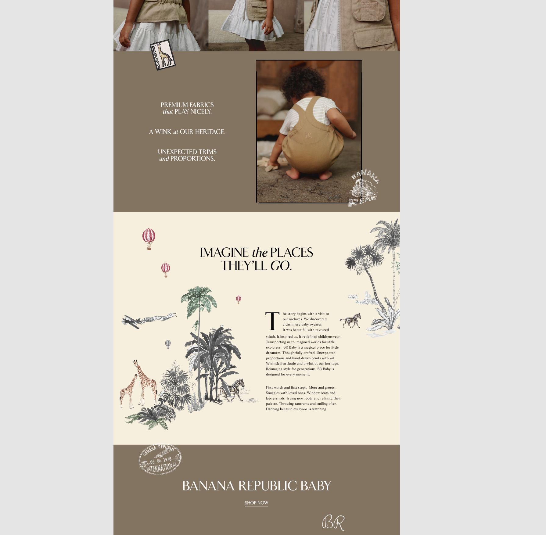 Create an immersive experience across all BR touchpoints that attract new customers and convert existing customers into Baby shoppers through our unique quality and value proposition. We were to highlight the functionality, luxury materials and sustainability of the products -- and focus on the emotional connection that last with customers on their journey to parenthood.