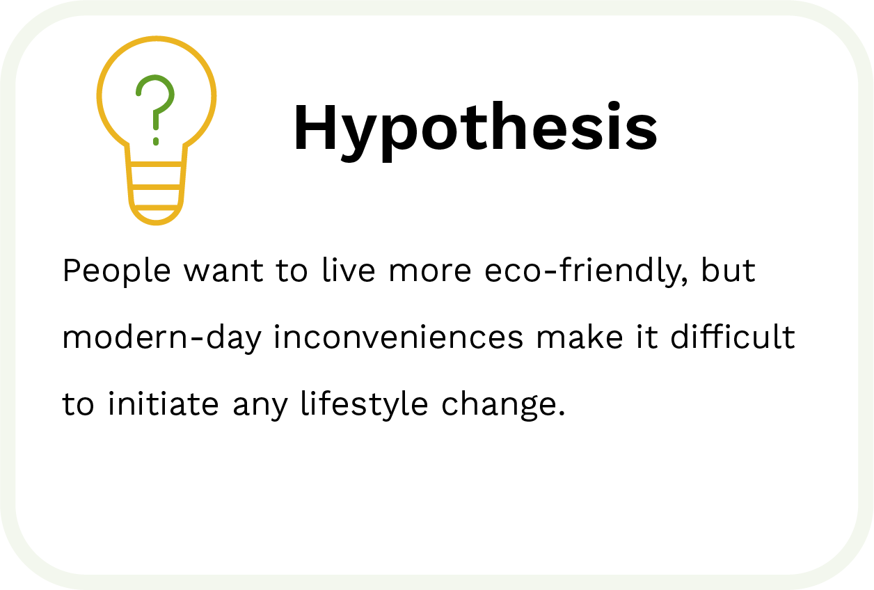 I conducted user interviews with 5 participants who expressed interest in changing their lifestyle habits for environmental reasons.