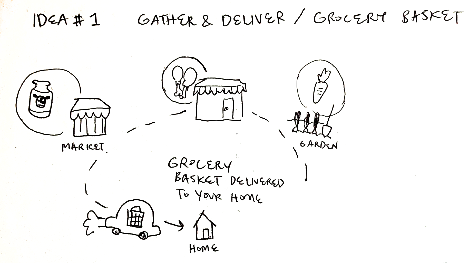 After identifying the main goals users would want to accomplish with this product, I visualized the user stories with post it notes. The key actions I came up with were “Make a purchase” and “Pick up the bag”. I determined which actions to include in the MVP by asking myself if it contributed to one of those actions.