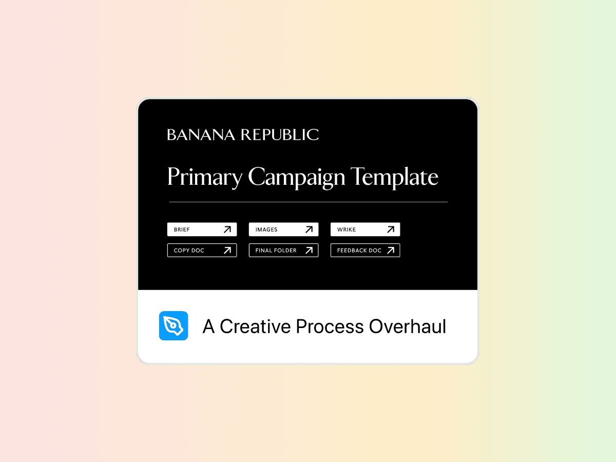 Complete overhaul of creative workflow for the marketing department at Banana Republic.